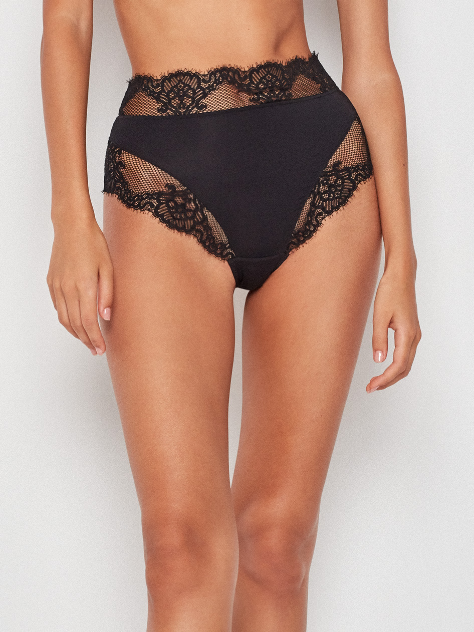 Высокие трусы слипы из кружевной ткани.