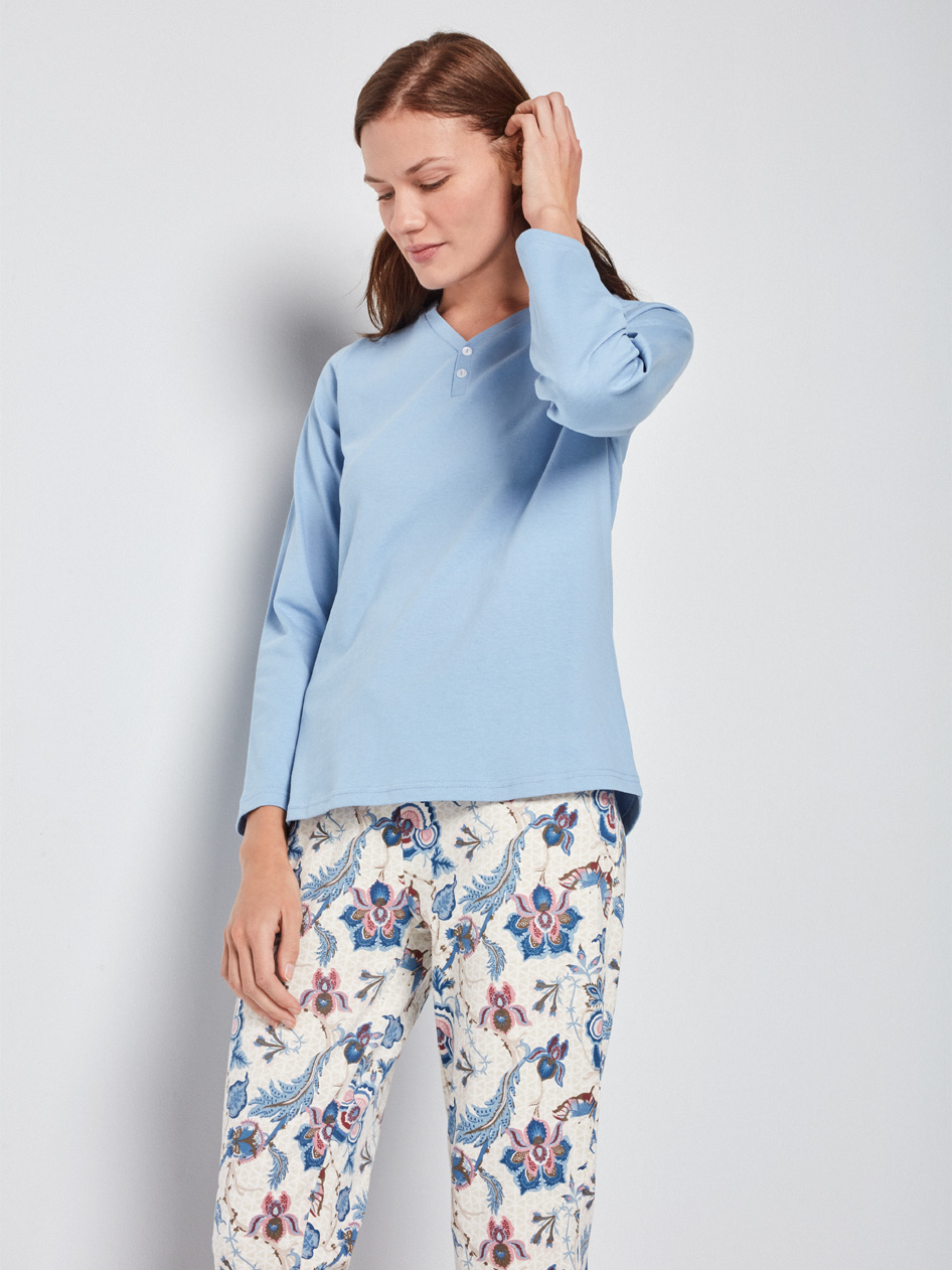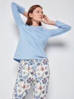 Роскошный пижамный комплект с хлопковой футболкой и брюками с цветочным принтом. Изготовленный только из лучших материалов, этот пижамный комплект обеспечит вам непревзойденный комфорт и стиль.